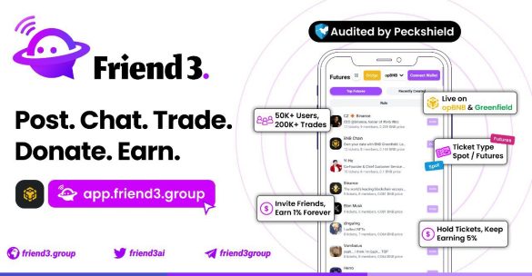 The platform’s exponential growth and unparalleled success have positioned Friend3 as the #1 trending Social dApp on both the BNB Chain and OpBNB Chain. Within just seven weeks, Friend3’s Open-source app audited by Peckshield has garnered an impressive 50,000 users and facilitated over 200,000 transactions. Friend3 is first-of-its-kind in many revolutionary SocialFi features. It stands out as the first dApp to offer customizable pricing curves in social protocols, thanks to its unique mechanism that empowers content creators in ways previously unexplored. With its recent OpBNB release, Friend3 also introduced futures trading of Social accounts, laying the groundwork for the evolution of SocialFi. The platform has partnered some of the strongest players in Web3 Space including BNB Chain, OKX, Floki, Coin98, Safepal, and more!